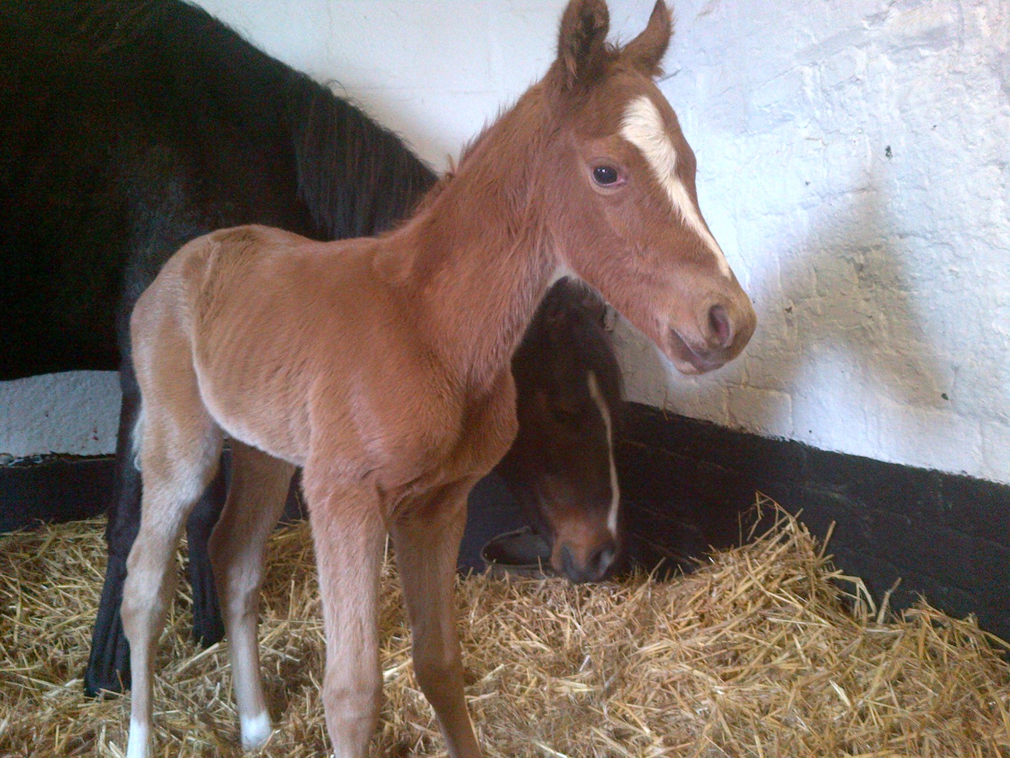 We were delighted to welcome a new addition to the stud . . .  One of our own mares, Instructress had her second foal on Monday 10th March . . . A very lovely looking filly by Pastoral Pursuits . . . Instructress has her first foal here on the stud, a Notnowcato filly who is now a Yearling.  She is developing nicely in to a big, fine looking chestnut with a personailty to die for . . . It is very special to bred, foal them down, watch them grown and then transfer them in to the racing yard all here on the stud . . . Fingers crossed for a future superstar among them!! . . .
